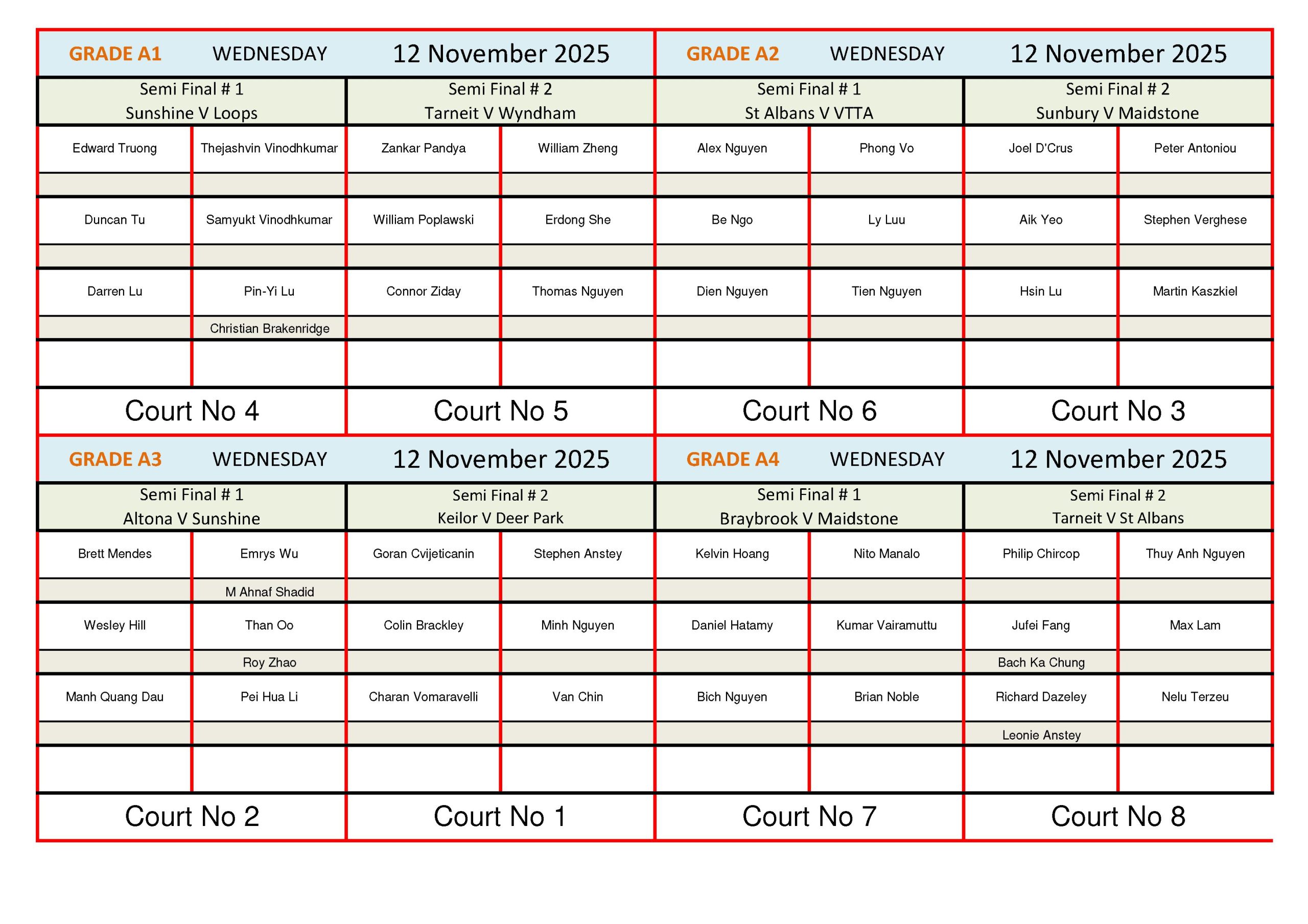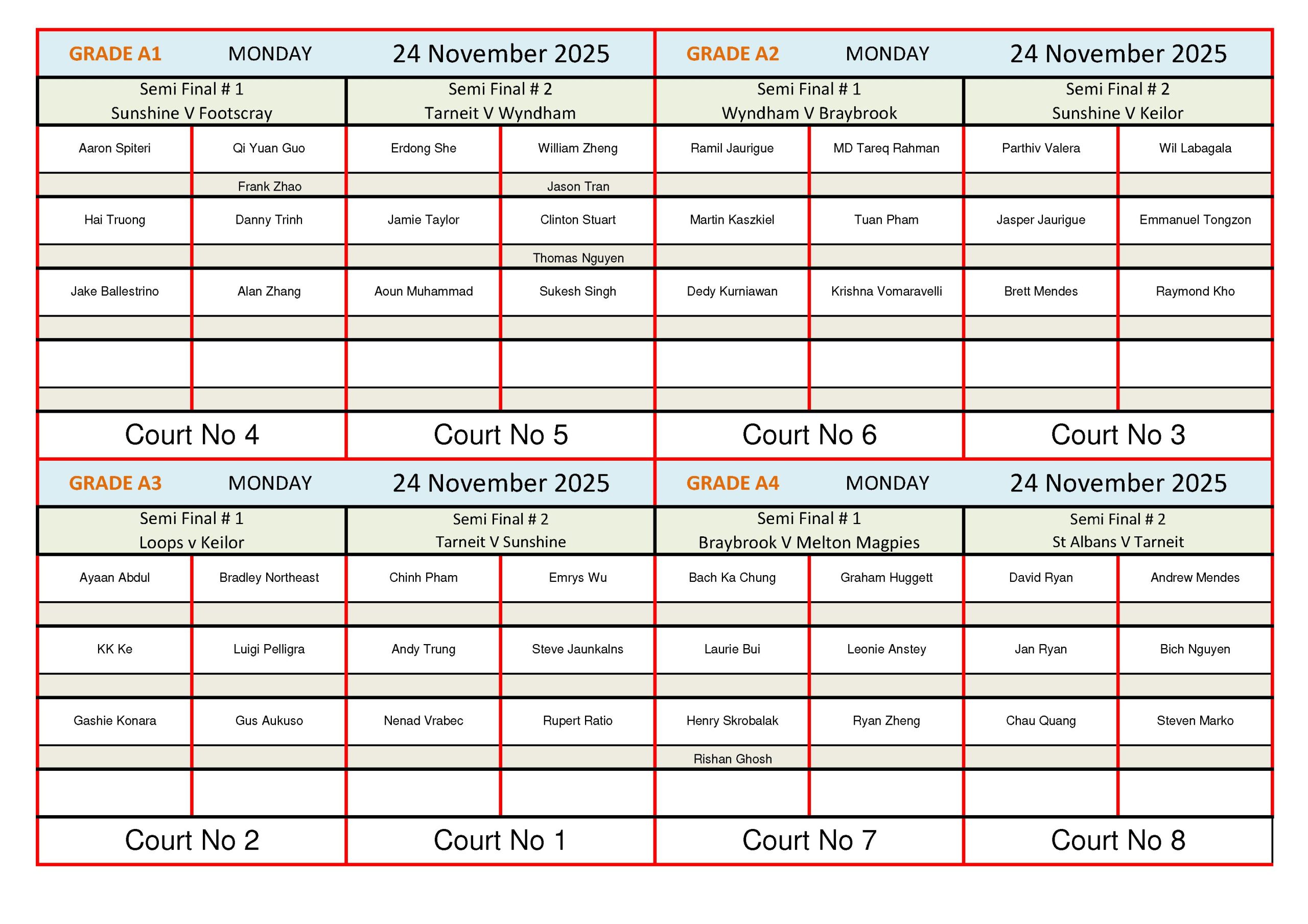 Please note as there are limited available spots, unfortunately some players may miss out. All current players from last season are guaranteed a spot but not in a particular grade.