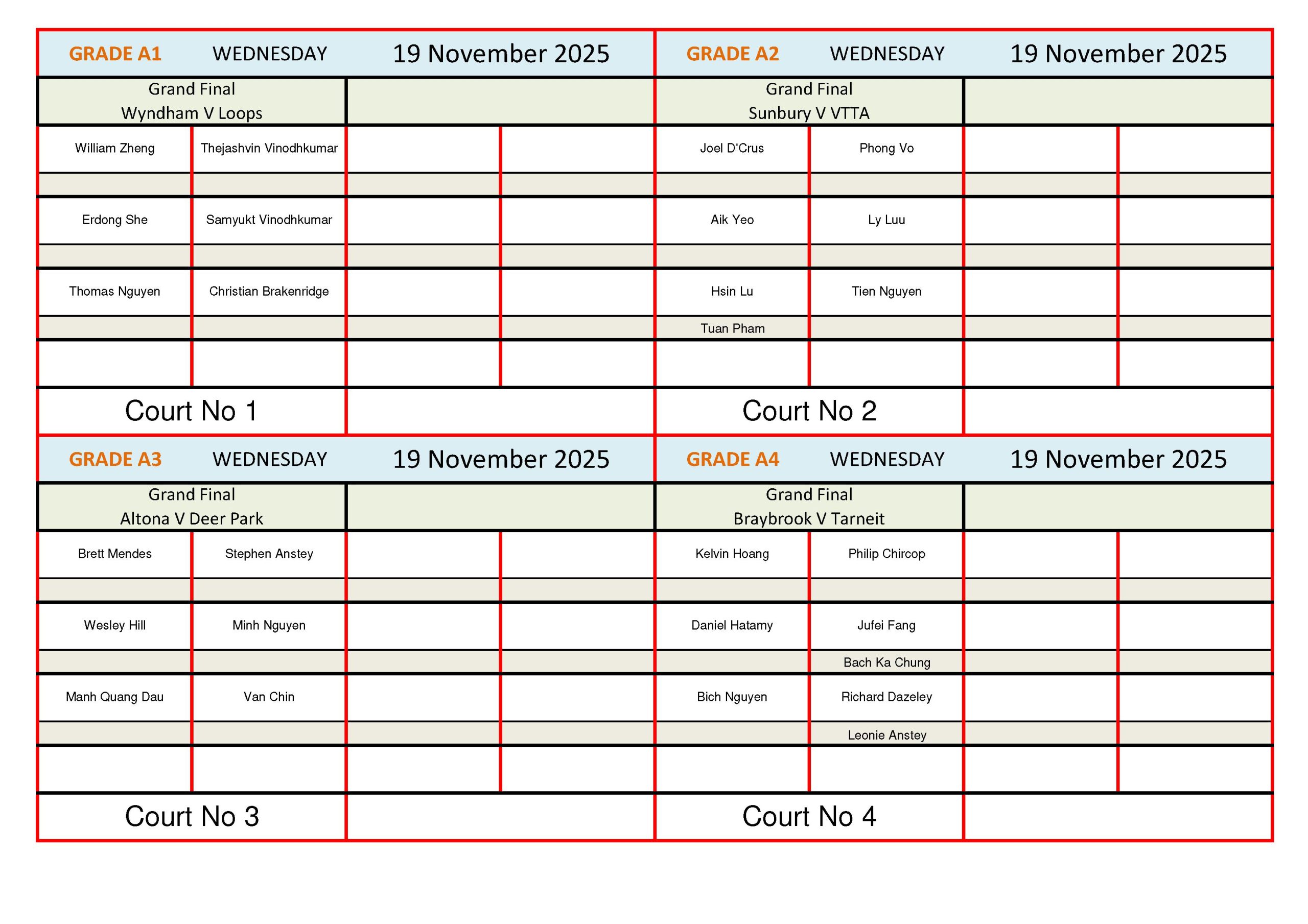 Wednesday Xmas Grand Finals 2025/2026