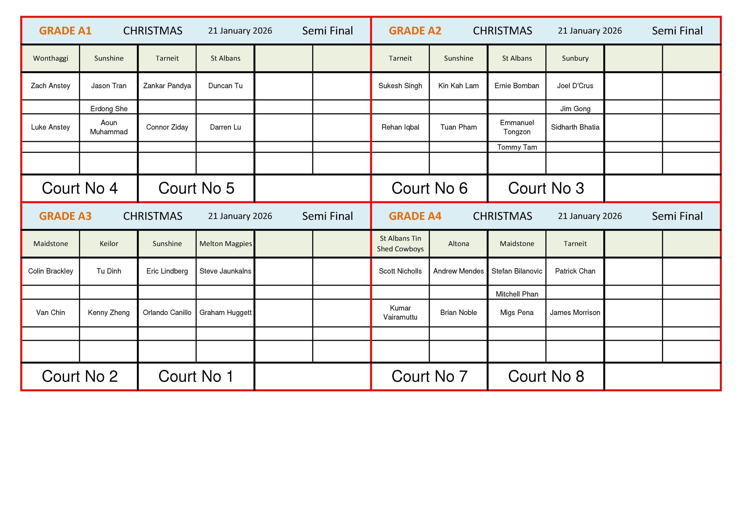 Wed Xmas Semi Finals 2025/2026