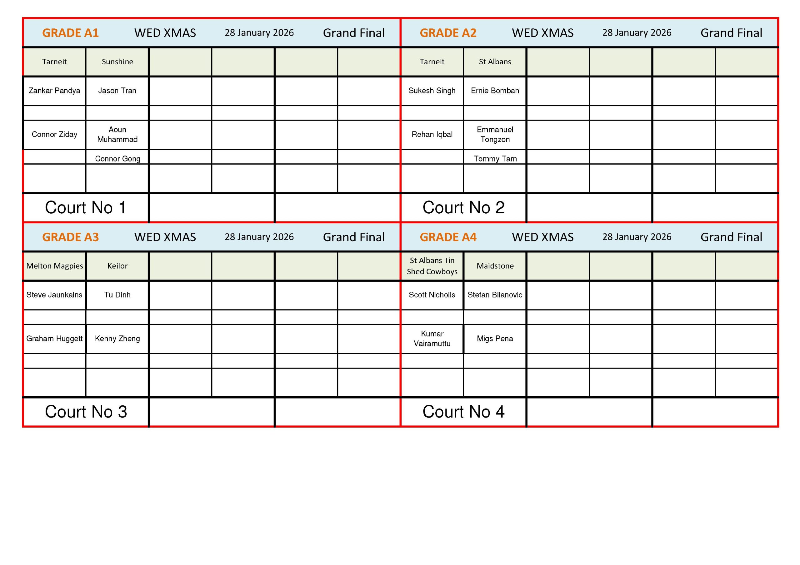 Wednesday Xmas Grand Finals 2025/2026